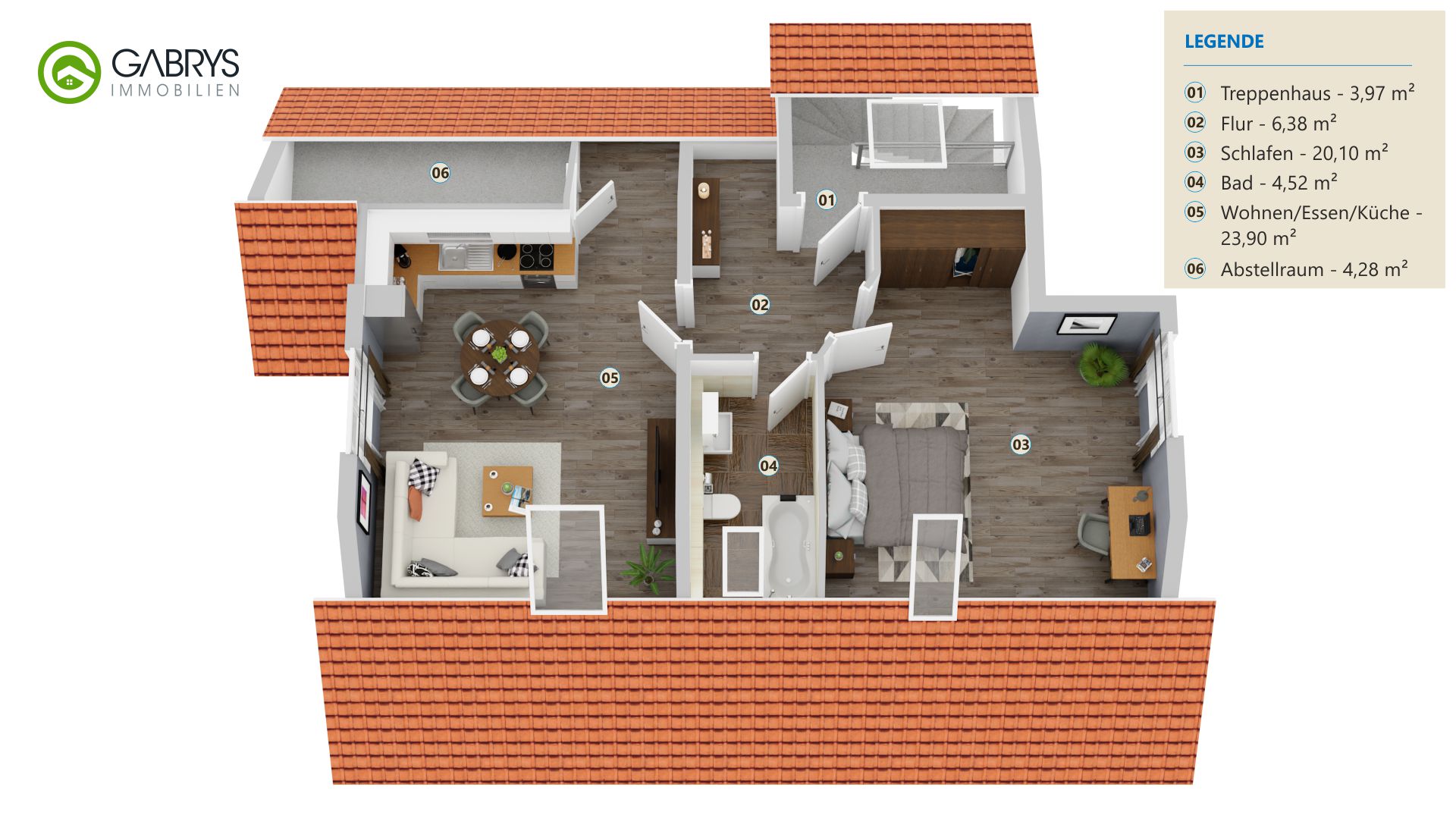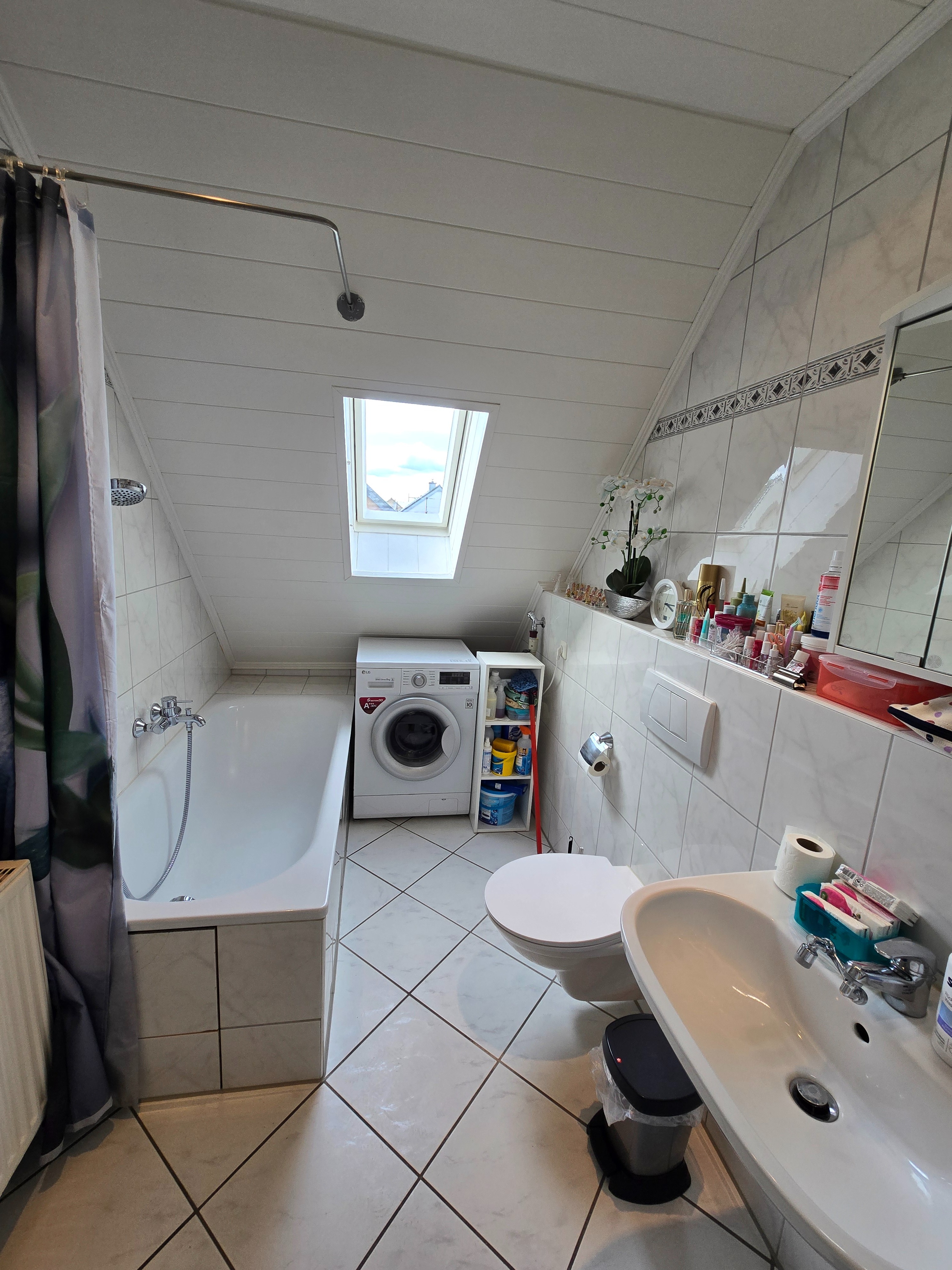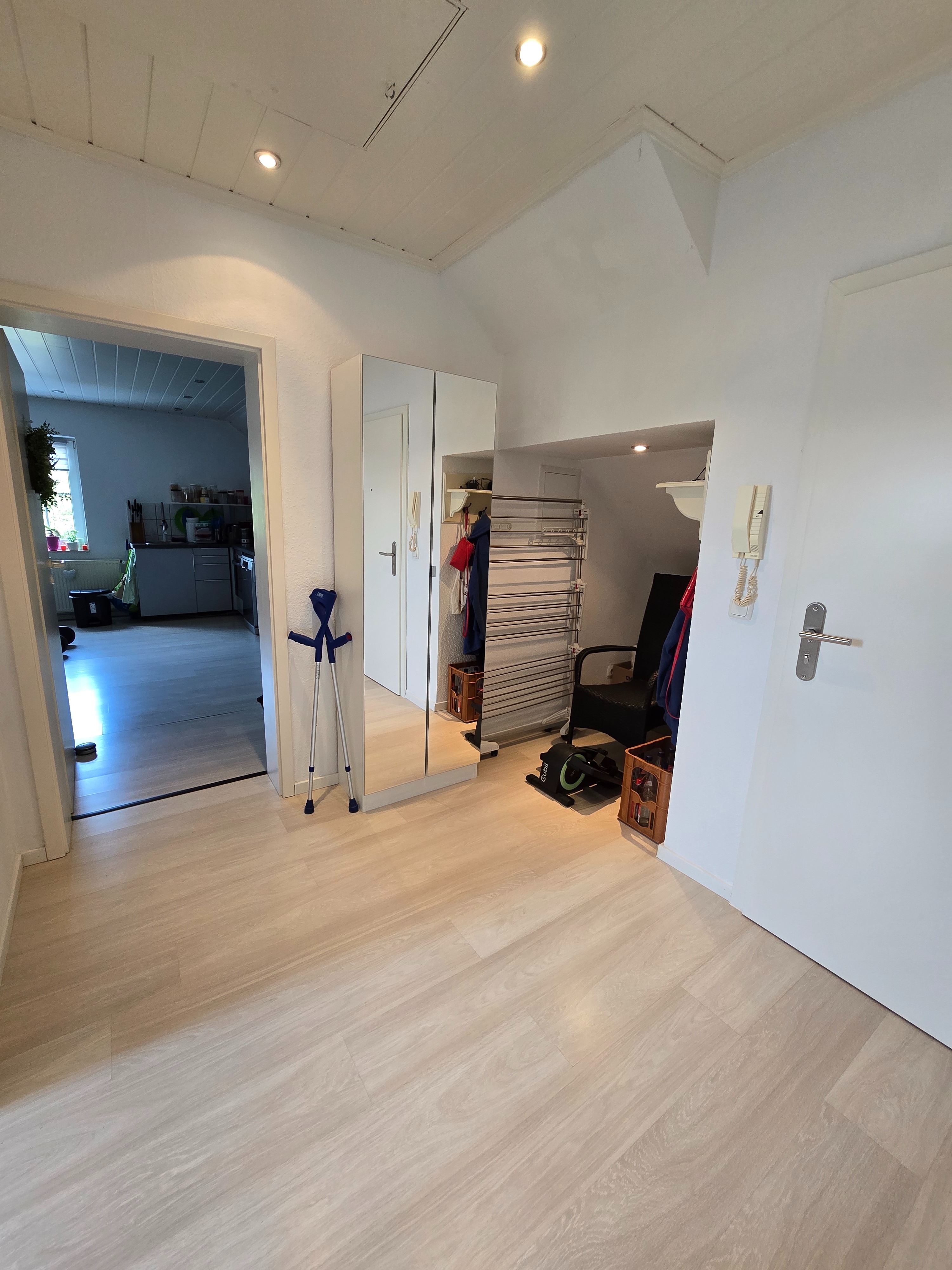 Die Waschmaschine befindet sich im Badezimmer, der Abstellraum verfügt über eine Anschlussmöglichkeit für einen Trockner und bietet zusätzlichen Stauraum. Im Flur befindet sich eine praktische Garderobennische, die für Ordnung sorgt und Platz für Jacken und Schuhe bietet. Dazugehörig ist außerdem der Spitzboden, der als zusätzliche Abstellmöglichkeit genutzt werden kann. Ein Balkon ist nicht vorhanden.